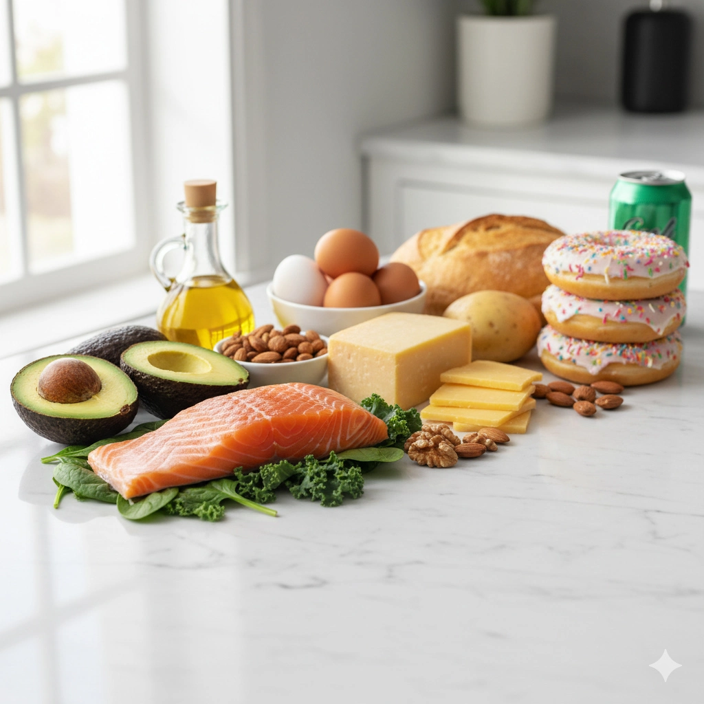 Not all fats are equal. Prioritize healthy fats like those from avocados, olive oil, and fatty fish. Avoid trans fats, ultra-processed oils, and highly processed foods despite being low in carbs.
